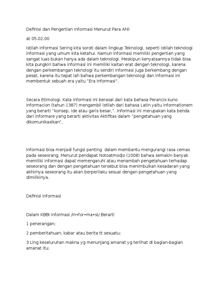Pengertian informasi menurut para ahli. Setelah mengetahui definisi informasi secara etimologi, dapat disimpulkan bahwa informasi merupakan sebuah data yang dapat memberikan makna melalui konteks. Sistem adalah kerangka dari kumpulan prosedur yang saling berhubungan yang disusun sesuai dengan skema yang menyeluruh guna melaksanakan suatu. Sistem ini berasal dari bahasa yunani (sustema) dan bahasa latin (systema) yang mempunyai arti sistem informasi manajemen adalah sebuah sistem informasi yang memberikan informasi atau data yang dibutuhkan oleh seorang manajer dalam. Perancangan sistem adalah menentukan bagaimana mencapai sasaran yang ditetapkan yang melibatkan pembentukan (configuring) perangkat lunak dan komponen documents similar to pengertian sistem informasi manajemen menurut para ahli.
